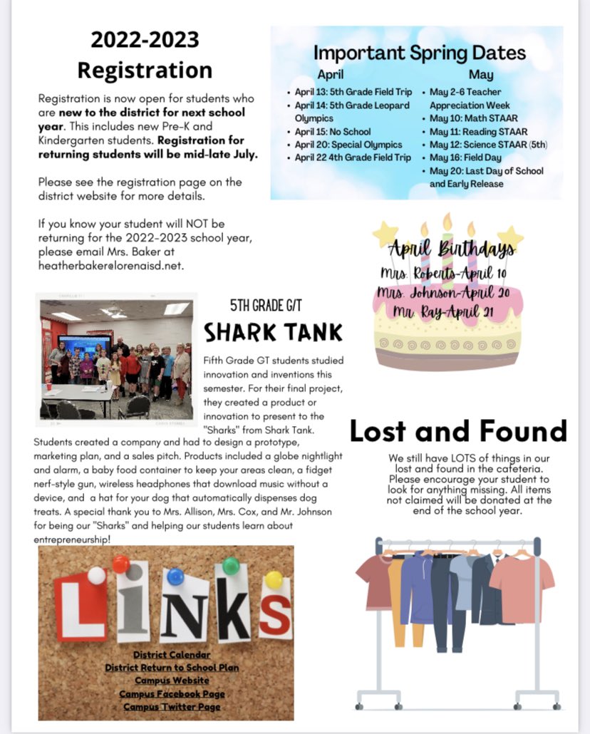 Lorena Elementary School on Twitter: "LES Newsletter: April 2022 .